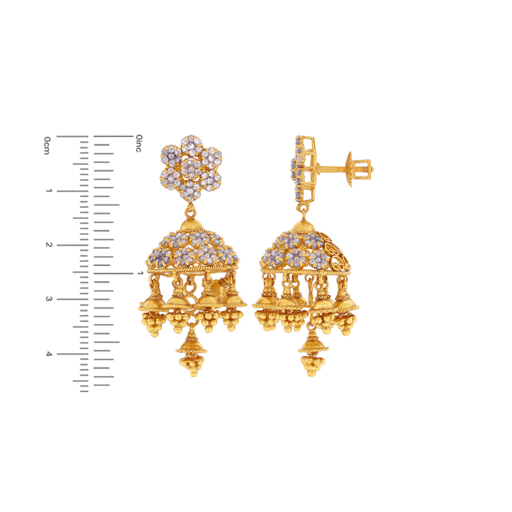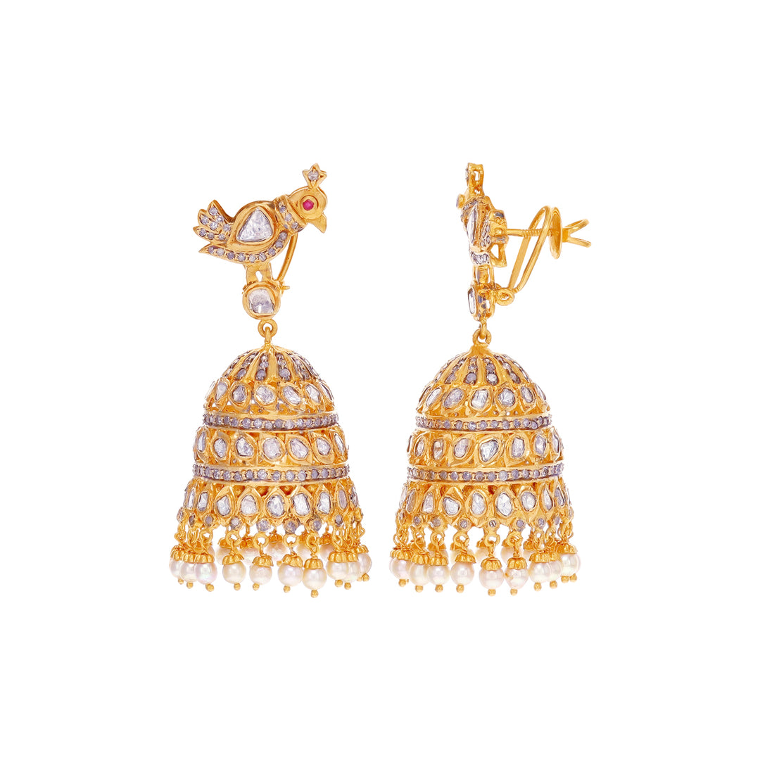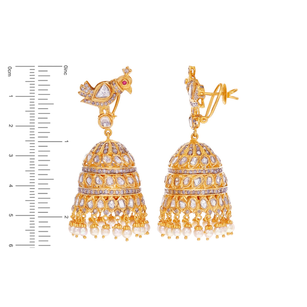 8.80CTW Rose Cut Diamond Jhumkha With Ruby & Pearl in 22K Gold