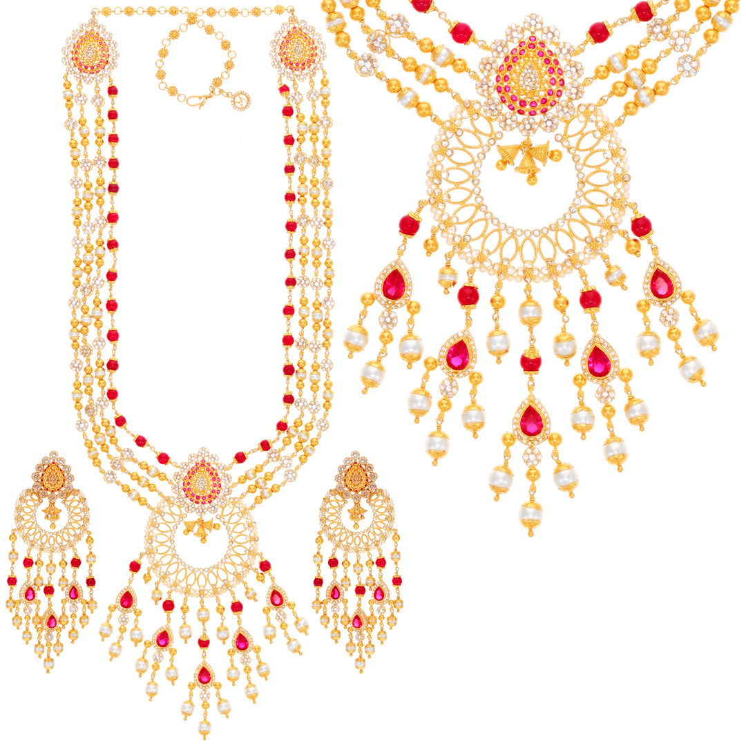 3.02CTW Rose Cut Diamond Maang Tikka With Ruby & Pearl in 22K Gold