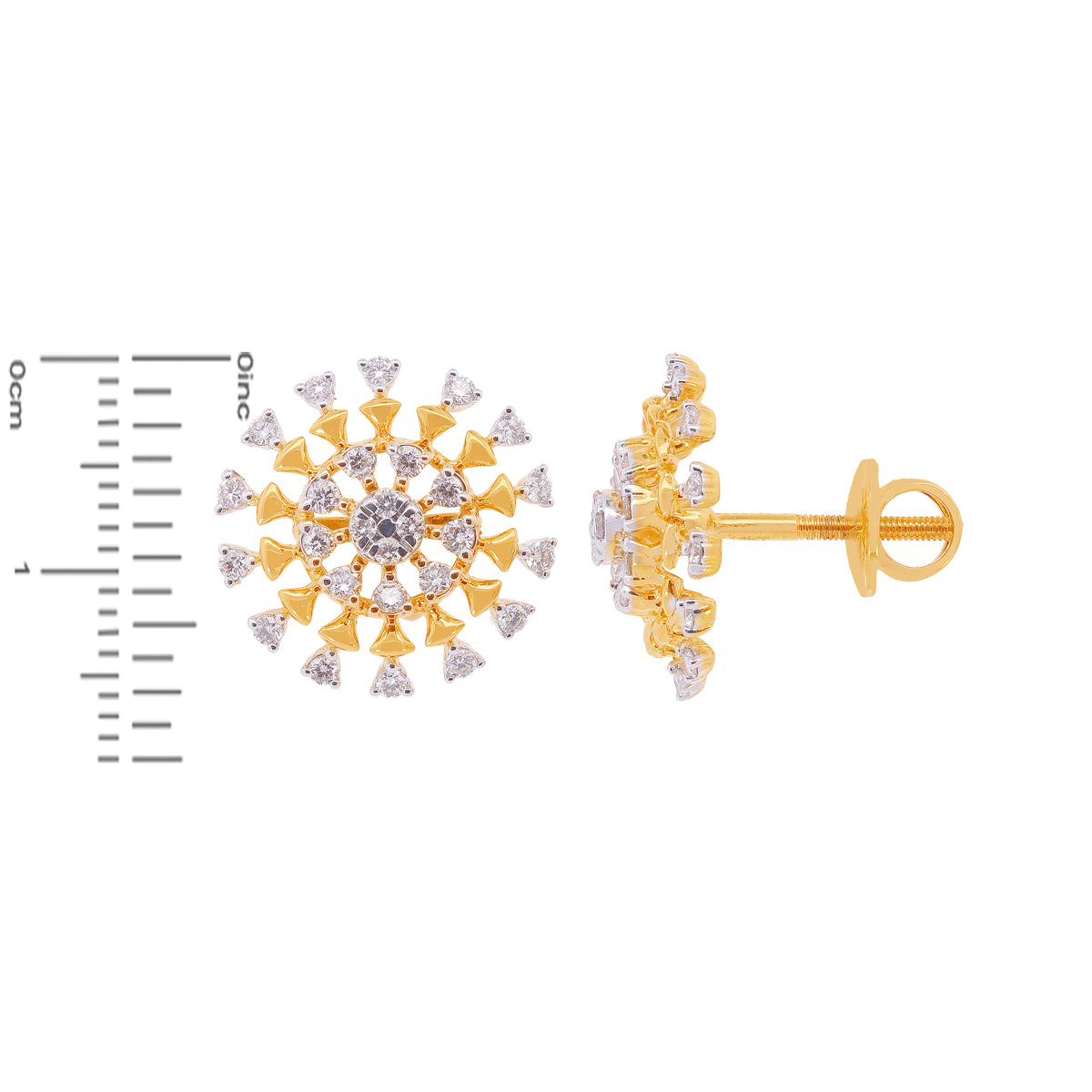Enhance your elegance with Malani Jeweler's exquisite Diamond Earrings in 18K Yellow Gold. Expertly crafted for women who appreciate timeless glamour these earrings feature stunning white diamonds. Each diamond boasts exceptional set in luxurious 18KT gold. Measuring 0.57 inches in both length and width these diamond studs are the perfect addition to your jewelry collection offering sophistication and grace. The convenient screw back design ensures secure wear. Whether you're stepping out for a special occasion or adding a touch of sparkle to everyday ensembles Malani Jeweler's diamond earrings promise unmatched quality and brilliance. Ideal for fashion enthusiasts searching for exquisite diamond tops these earrings are the epitome of luxury without compromising on elegance.