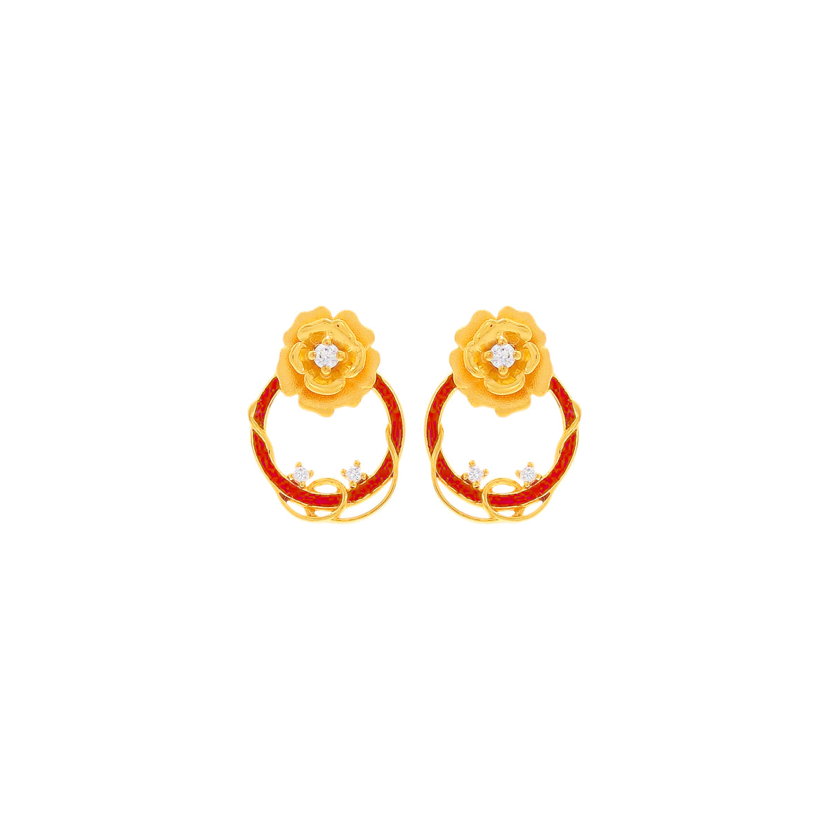 Intriguing Minakari Earrings With CZ in 22K Gold