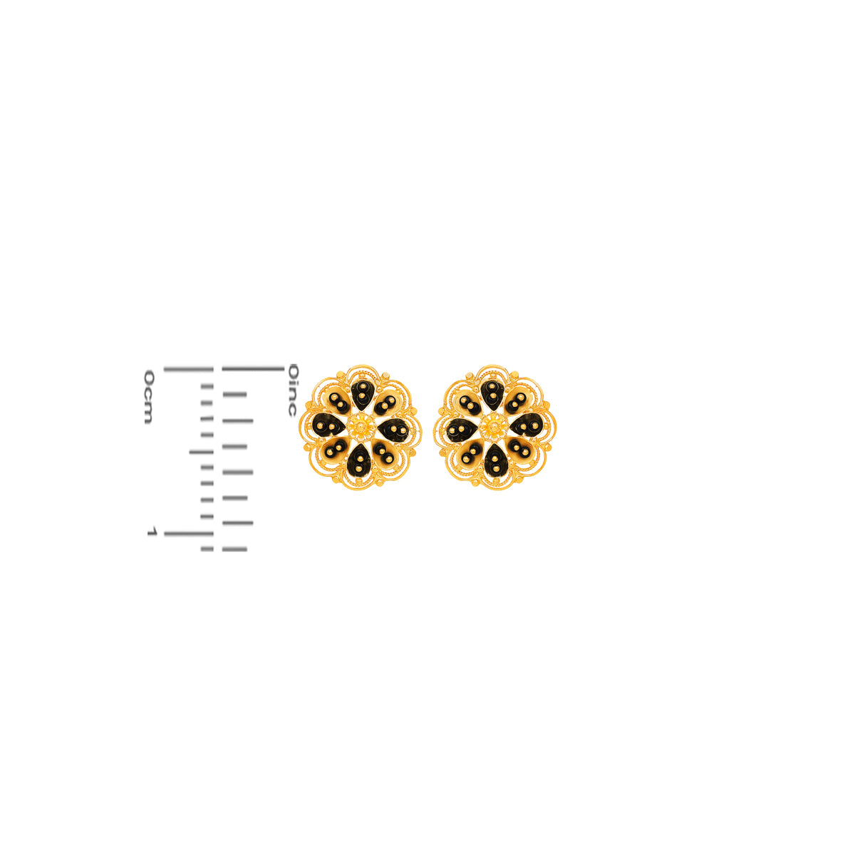 Introducing the extraordinary Ravishing Earrings with Black Beads by Malani Jeweler a stunning pair designed to captivate and charm. Crafted meticulously in 22K yellow gold these earrings radiate elegance and sophistication making them perfect for every occasion. Each earring measures 0.8 inches in both length and width providing a classic and balanced look that effortlessly complements any outfit. The earrings are equipped with a secure screw-back post ensuring they stay comfortably and firmly in place. These earrings embody quality and luxury. The yellow gold finish beautifully offsets the striking black beads creating a captivating contrast that is sure to draw attention. Embrace timeless elegance with Malani Jeweler's signature craftsmanship—an unmissable addition to any jewelry collection.