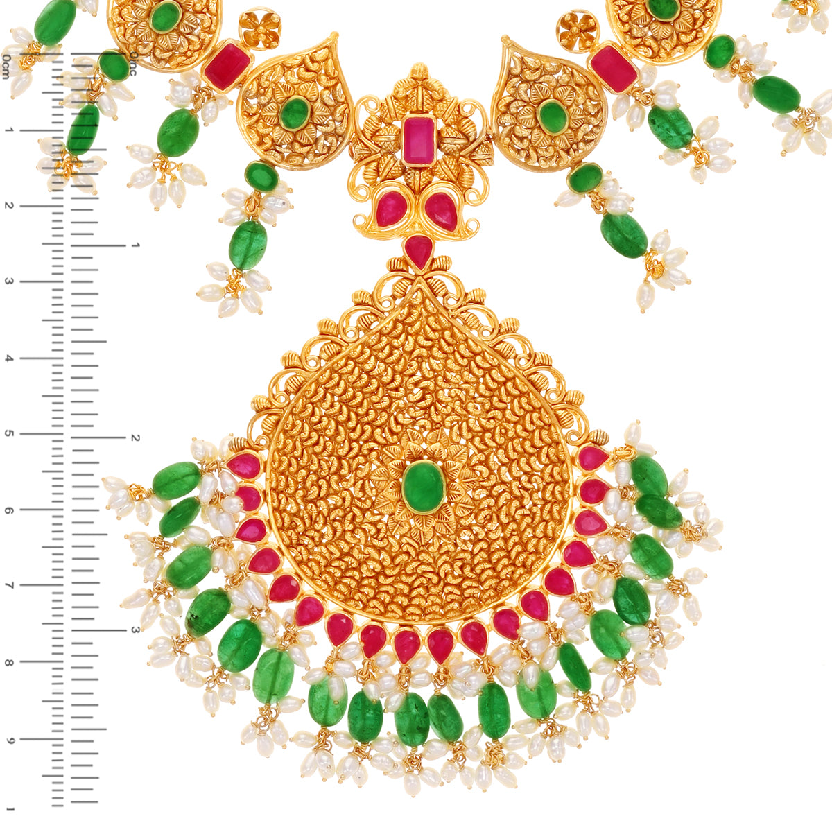 Antique Patta Haaram With Ruby Emerald & Pearl in 22K Gold