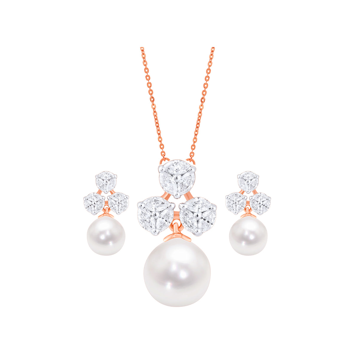 1.01Ct VVS/FG Diamond Pendant Set With Pearl in 18K Rose Gold