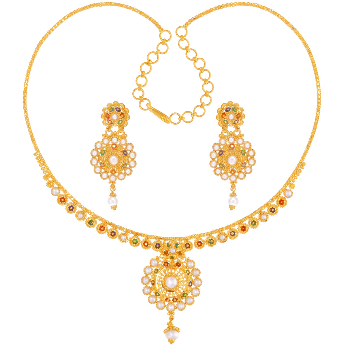 Captivating Minakari Necklace Set With Pearl in 22K Gold