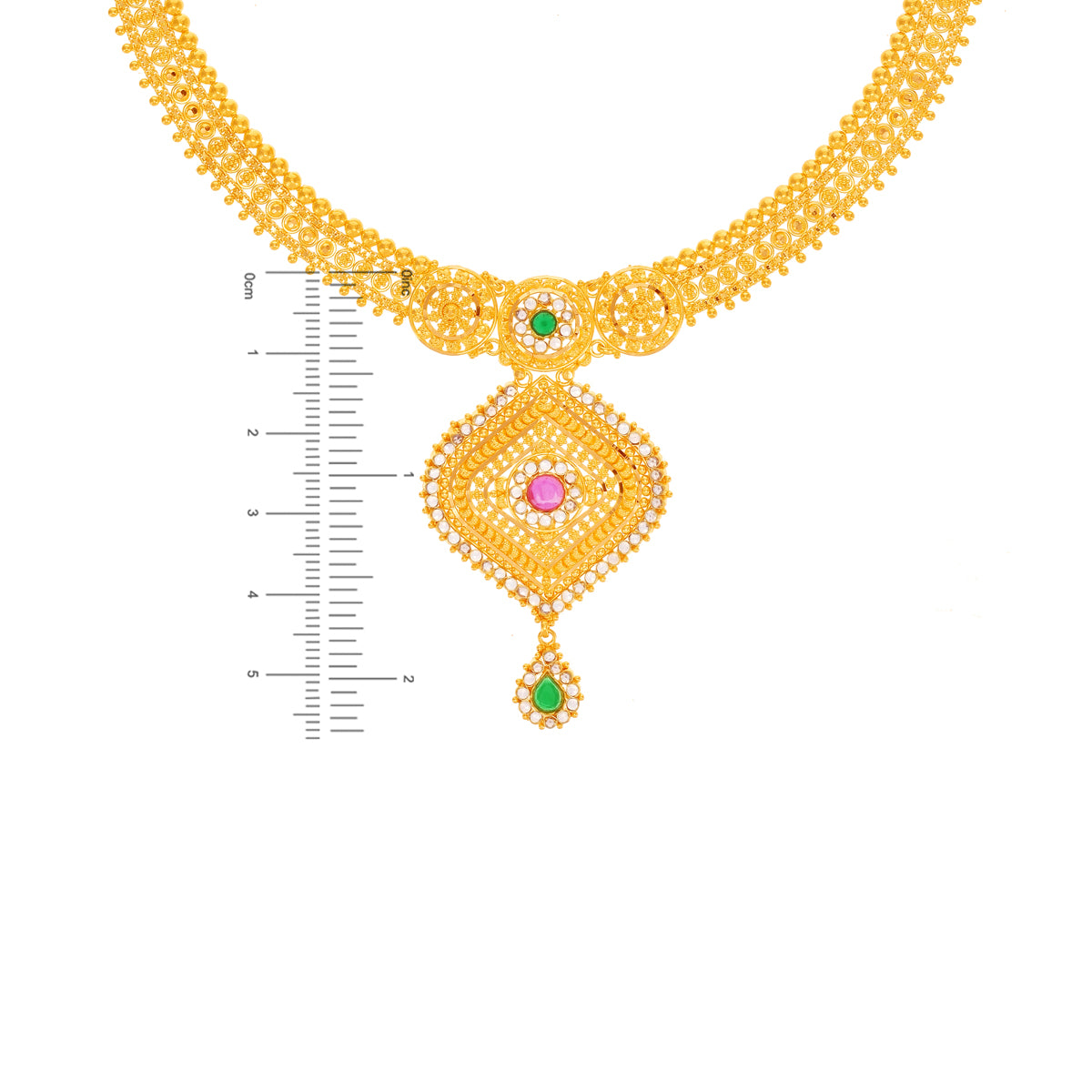 Charming Necklace Set With Ruby Emerald & Polki in 22K Gold