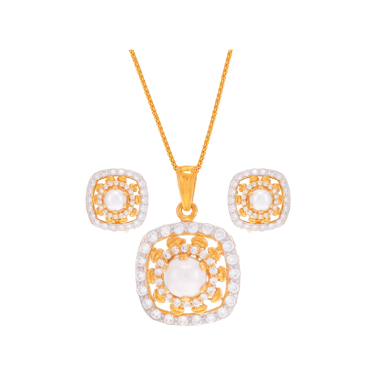 Endearing Antique Pendant Set With Pearl & CZ in 22K Gold
