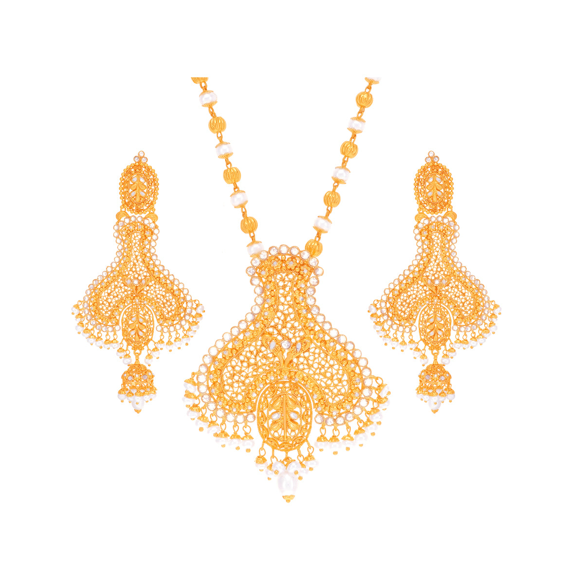 Gorgeous Antique Pendant Set With Pearl & CZ In 22K Gold