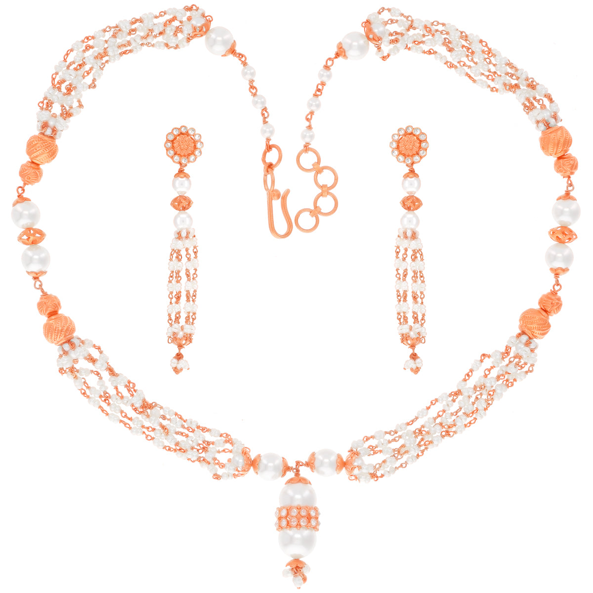 Gorgeous Necklace Set With White Polki & Pearl in 22K Rose Gold