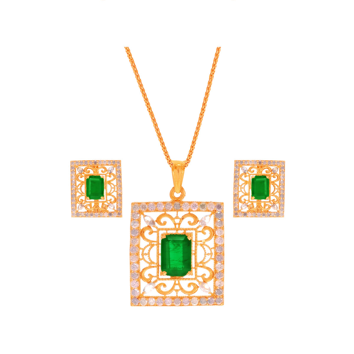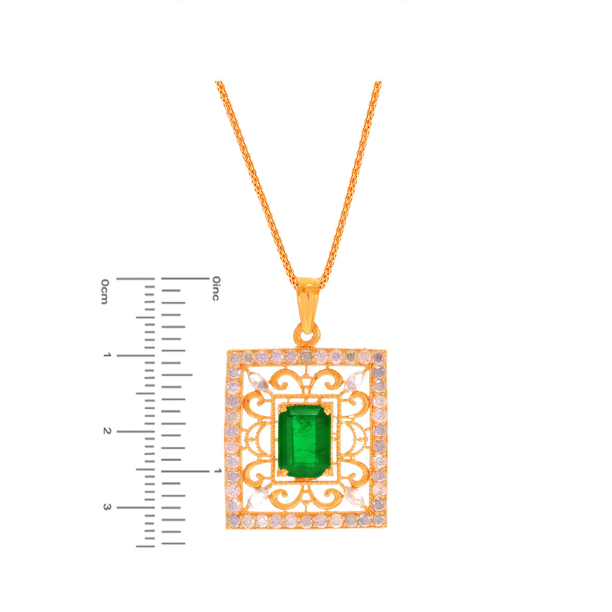 Intricate Antique Pendant Set With Emerald & CZ in 22K Gold