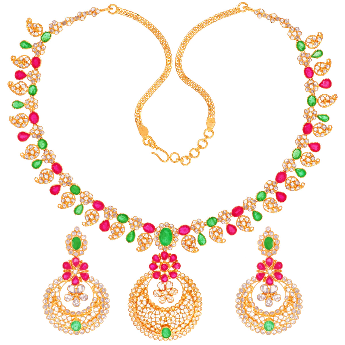 Ravishing Antique Necklace Set With Ruby & Emerald in 22K Gold