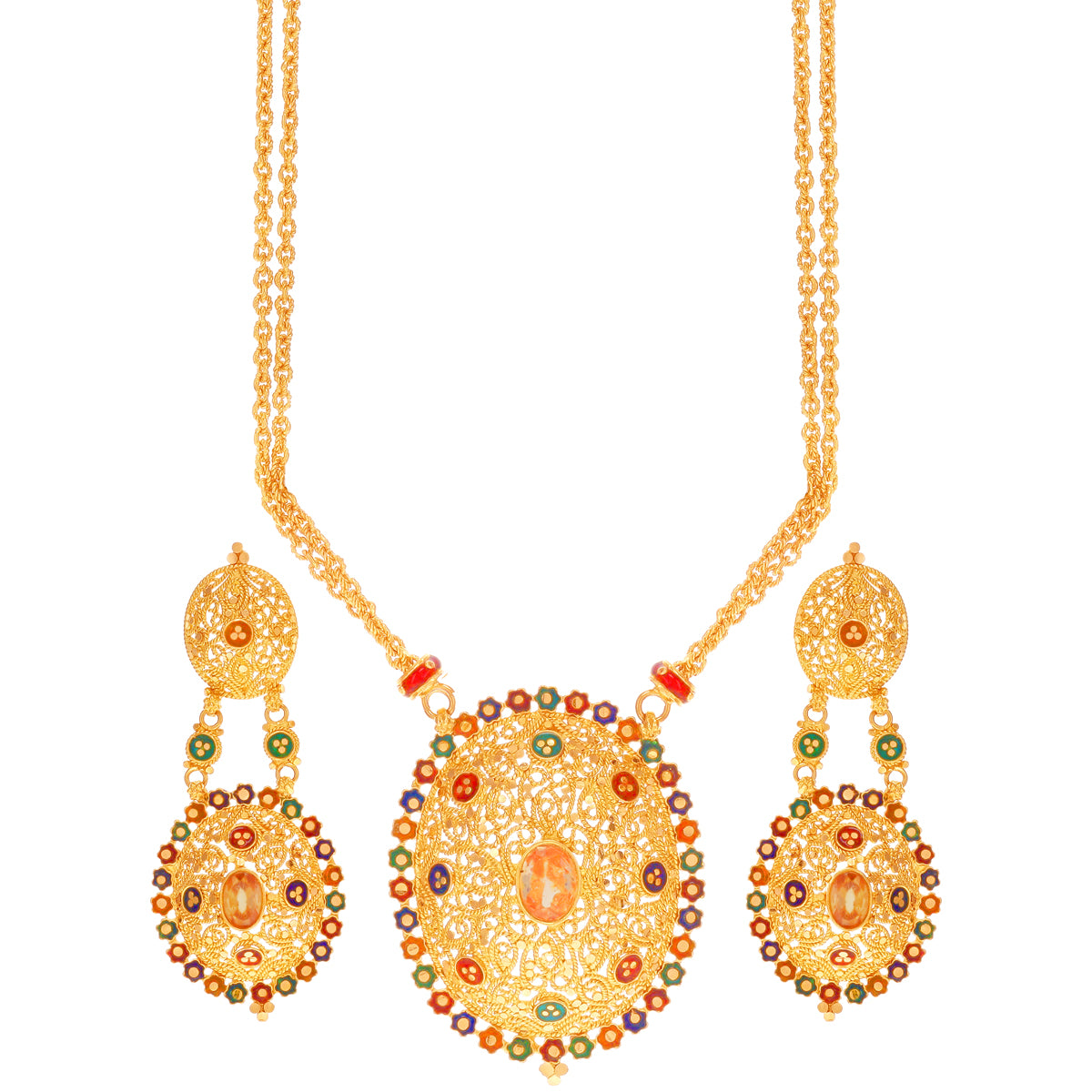 Sophisticated Minakari Necklace Set With Gemstones in 22K Gold