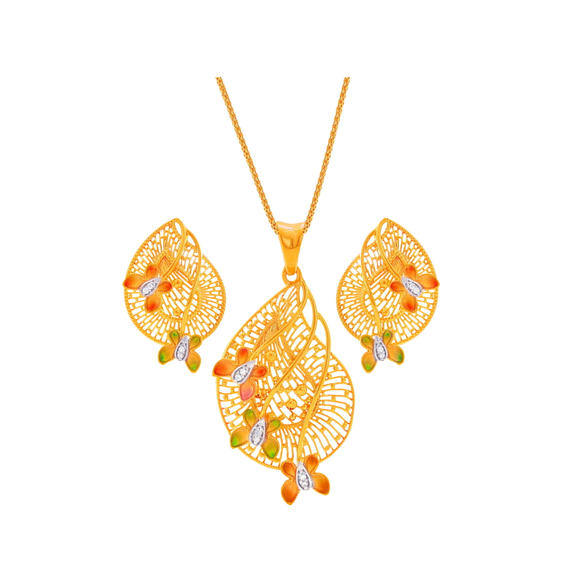 Stunning Minakari Pendant Set With CZ in 22K Gold