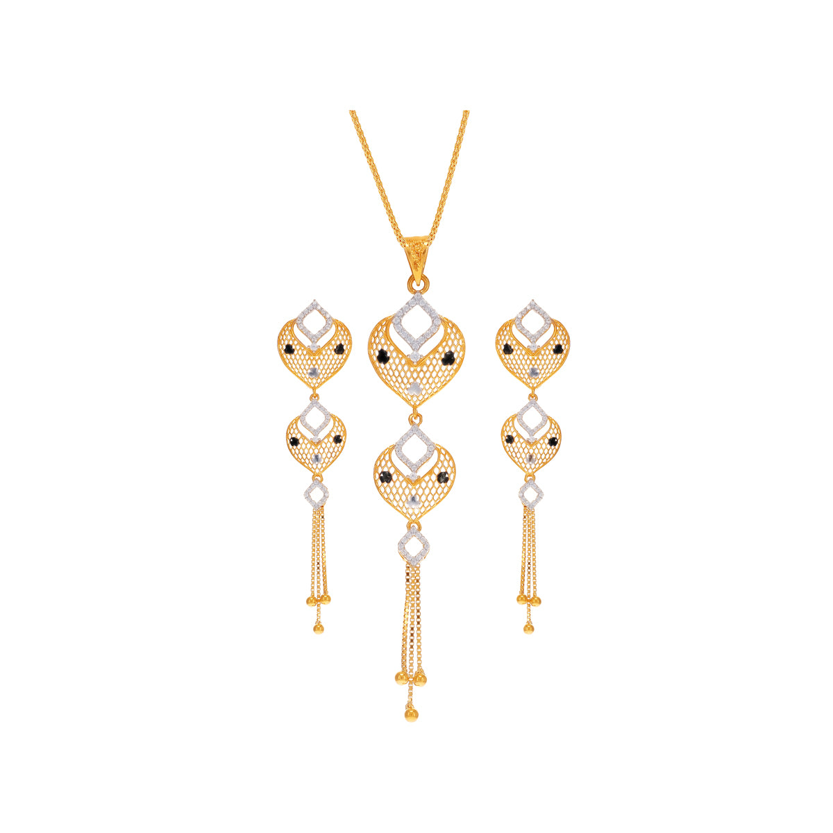 Stunning Two tone Pendant Set With CZ in 22K Gold