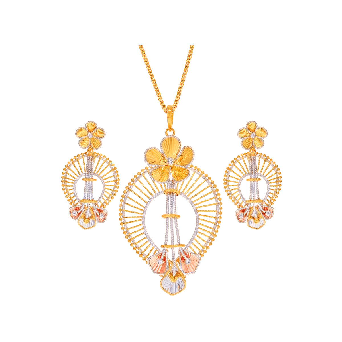 Opulent Floral Three tone Pendant Set in 22K Gold